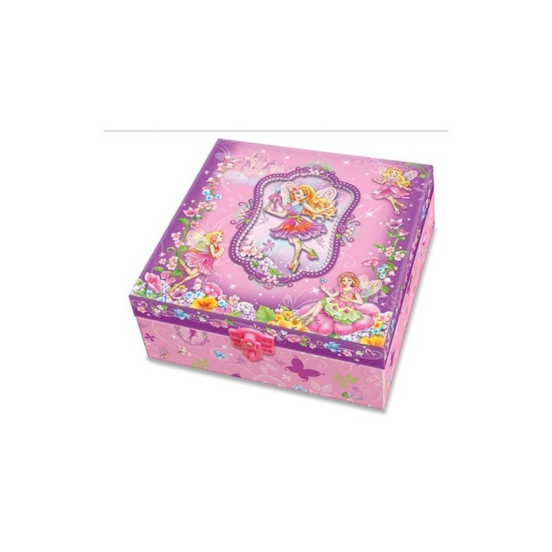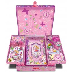 Zestaw zapakowany w ozdobne pudełko z 2 półeczkami, które można rozłożyć na boki, a pod nimi schować pamiętnik.