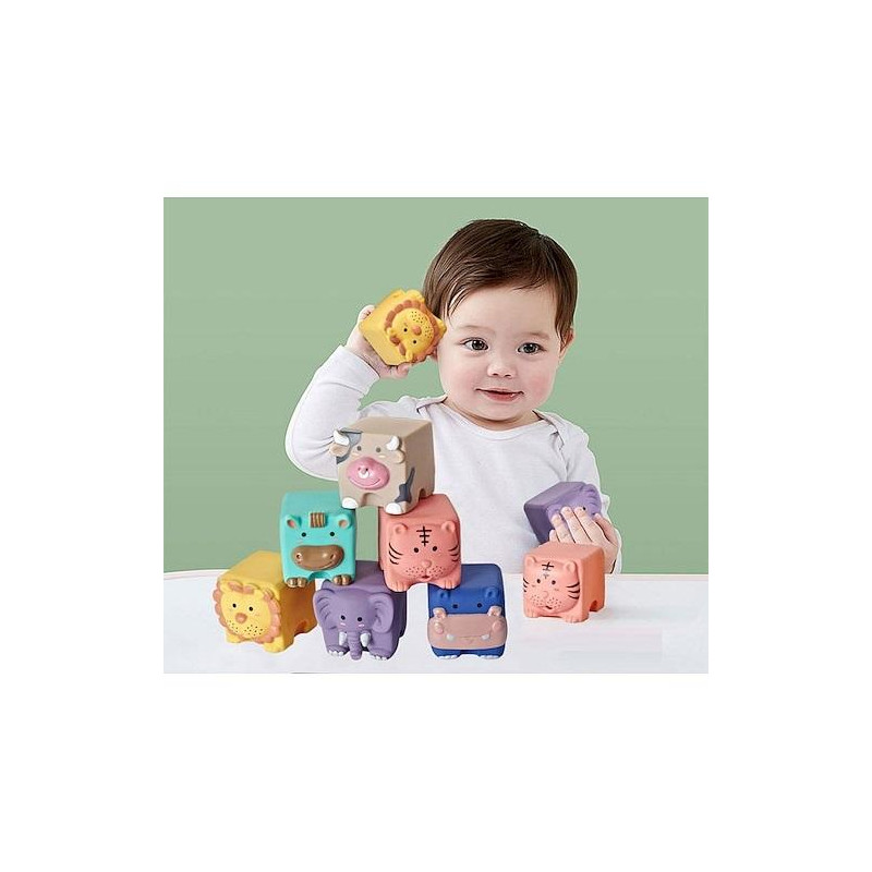 Super miękkie, kolorowe klocki sensoryczne z motywem zwierząt do zabawy dla maluszka, również w kąpieli. Dziecko chwytając klocki odkrywa różne kształty faktury oraz poznaje zwierzęta. Każda ze ścian klocka ma inną fakturę oraz inny motyw. klocki można układać jeden na drugim.