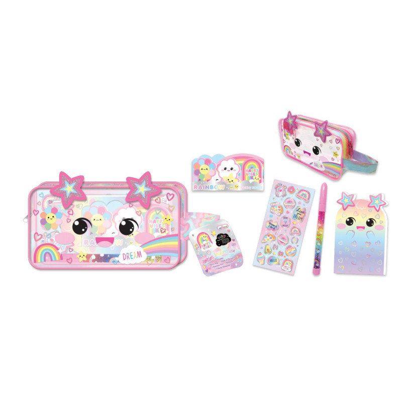 Zestaw zapakowany w ozdobną przezroczystą kosmetyczkę/piórnik, zapinaną na zamek. Dodatkowo sznureczek do wygodnego przenoszenia.