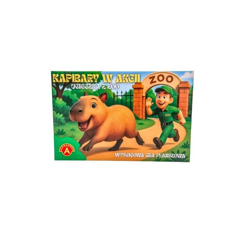 Przed Wami wspaniała gra planszowa pełna emocji, śmiechu i zwariowanych przygód, której bohaterami są ukochane przez dzieci kapibary! Te sympatyczne stworzenia postanowiły uciec z zoo i teraz ruszają w szaloną podróż w stronę wolności. Czy uda im się dotrzeć do bramy, zanim ktoś je zatrzyma? Na trasie czeka ich mnóstwo niespodzianek - spotkają przyjazne, ale czasem i nieco zdezorientowane zwierzęta: słonie, lwy, żyrafy, sowy czy hipopotamy. Każde spotkanie może pomóc w ucieczce albo ją nieco skomplikować. Wszystko zależy od rzutu kostką i odrobiny szczęścia! Wygrywa ten, kto pierwszy dotrze do bramy wyjściowej, gwarantującej wolność!
