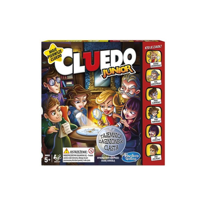 Cluedo Junior gra firmy Hasbro. Teraz gra Cluedo w wersji dla najmłodszych. Rozwiąż tajemnicę zaginionego ciasta. Gra rozwija wyobraźnię i umiejętność logicznego myślenia graczy. Ilość graczy 2-4 Wiek 5+