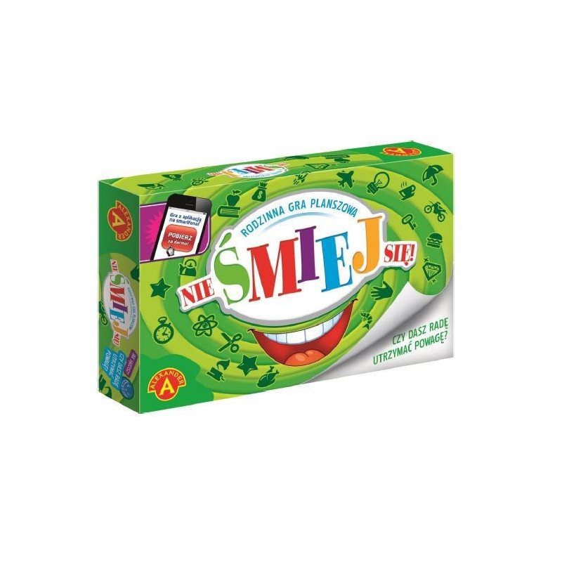 Nie śmiej się gra firmy Alexander. Pokaż, zaśpiewaj, zatańcz jedno ze 440 haseł, jak najdłużej zachowaj powagę aby zdobyć przewagę. Gra w której nie zabraknie śmiechu. Świetna zabawa gwarantowana. Liczba graczy 3-12 Wiek 8+ Ostrzeżenie:Nieodpowiednie dla dzieci w wieku poniżej 36 miesięcy. Małe części.