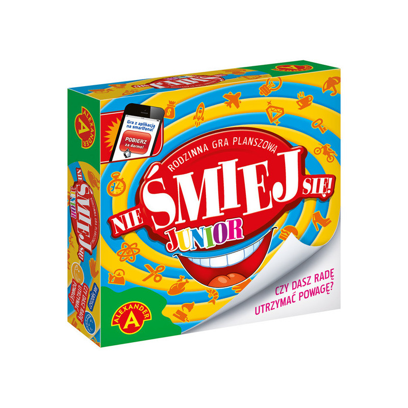 Nie śmiej się wersja Junior gra firmy Alexander. Pokaż, zaśpiewaj, zatańcz jedno ze 660 haseł, jak najdłużej zachowaj powagę aby zdobyć przewagę. Gra w której nie zabraknie śmiechu. Świetna zabawa gwarantowana. Liczba graczy 3-8 Wiek 3+ Ostrzeżenie:Nieodpowiednie dla dzieci w wieku poniżej 36 miesięcy. Małe części.