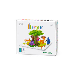 Masa plastyczna Hey Clay Zwierzęta leśne jest zestawem składającym się z osiemnastu puszek piankoliny w różnych kolorach. Ilość masy plastycznej umożliwia stworzenie sześciu zwierząt mieszkających w lesie - lisa, wiewiórki, wilka, jelenia, dzika, niedźwiedzia. Po stworzeniu wszystkich figurek, pozostaje nieco piankoliny, by dziecko mogło zrealizować własne kreatywne pomysły.