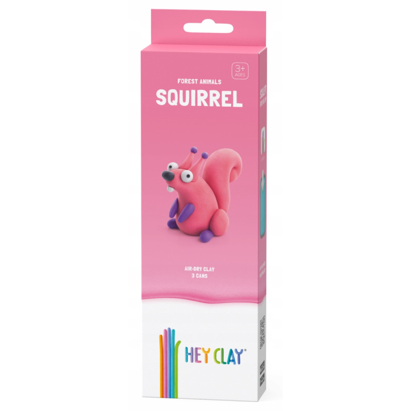 Zestaw ten to połączenie kreatywnej zabawy z aplikacją edukacyjną. Kolory przedstawione na opakowaniu pozwalają na własnoręczne stworzenie figurki przedstawiającej Wiewiórkę. Pewna ilość masy pozostaje, co sprawia, że można ją użyć do realizacji własnych kreatywnych pomysłów. Po skończonej zabawie należy odstawić figurkę na powietrzu, aby stwardniała. W ciągu 24 godzin masa plastyczna całkowicie wysycha i po tym czasie będzie można się nią bawić. Zabawa z wykorzystaniem zestawu Hey Clay pozytywnie wpływa na prawidłowy rozwój zdolności manualnych, kreatywności i wyobraźni dziecka, a także zapewnia najmłodszym mnóstwo radości i świetnej zabawy na wiele godzin. Wszystkie elementy zestawu zostały umieszczone w opakowaniu na blistrze.