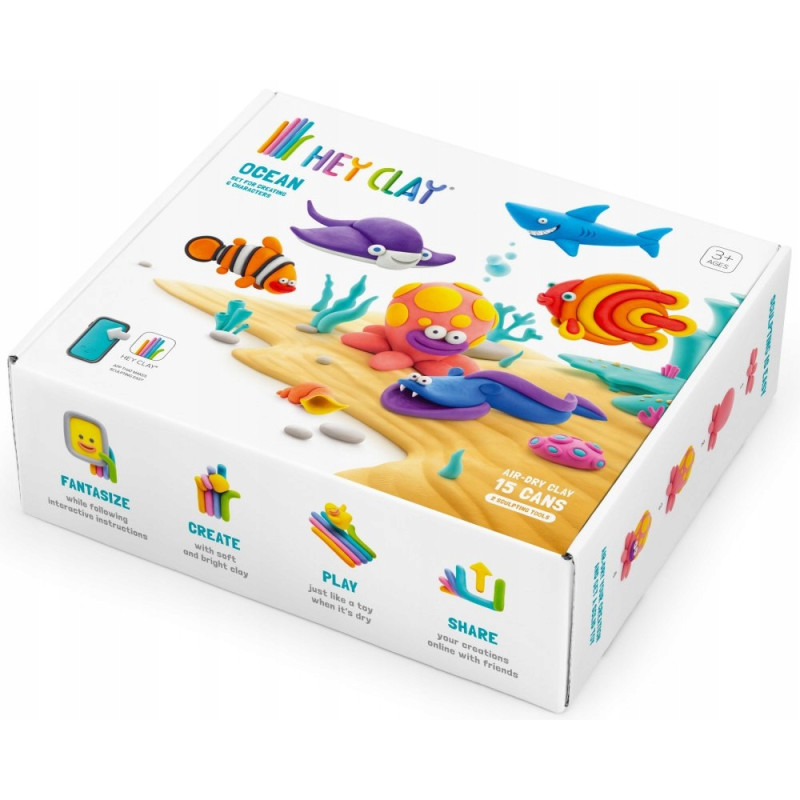 Masa plastyczna Zwierzęta oceanu jest zestawem, dzięki któremu wyczarujesz w swoim pokoju morskie dno pełne kolorowych zwierząt! Spójrz na rekina, znanego w całym oceanie wielbiciela zabaw i przyjęć. Płynie, szczerząc zębiska, na imprezę urządzaną przez pogodną i zawsze uśmiechniętą ośmiornicę. Zestaw pozwoli ci ulepić sześć morskich zwierzątek. Kogo wyrzeźbisz najpierw?