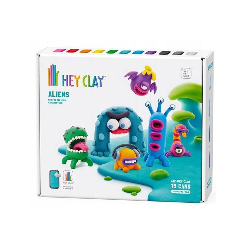 Zestaw Hey Clay zawiera 15 pojemników z miękką i delikatną masą, dwa narzędzia ułatwiające modelowanie oraz kod dostępu do aplikacji dla zakupionej serii postaci.