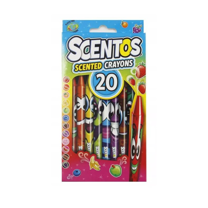 Dwadzieścia zapachowych kredek świecowych, ozdobionych wesołymi buźkami. Każdej z kredek przypisany został inny zapach, sprawdź, czy uda ci się rozpoznać każdy z nich.