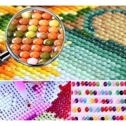 Aby powstała grafika należy przykleić diamenciki przy użyciu aplikatora na płótno pokryte specjalnym woskiem.