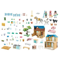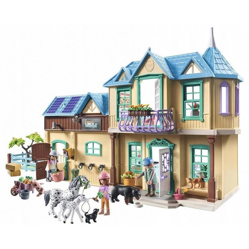 Malowniczy świat Playmobil, gdzie piątka przyjaciół spędza każdą wolną chwilę ze swoimi końmi. Z zestawami HoW dzieci przeżywają ciekawe, kreatywne i pełne radości przygody! Ranczo Waterfall jest 264-elementowym uroczo zaprojektowanym zestawem z trzema figurkami Playmobil, domem z wyposażeniem, zwierzętami i wieloma dodatkami. Przestronna stajnia dla koni jest domem klaczy Sparkles i źrebaka Domino. Ranczo zamieszkuje też wiele zwierząt domowych i gospodarskich, takich jak ciekawski prosiak Teddy, który często powoduje chaos podczas lekcji jazdy konnej! Duży zestaw Playmobil docenią miłośnicy koni i zwierzątek. Dziecko może samodzielnie umeblować rezydencję oraz tworzyć wspaniałe opowieści o idyllicznym zakątku Waterfall.