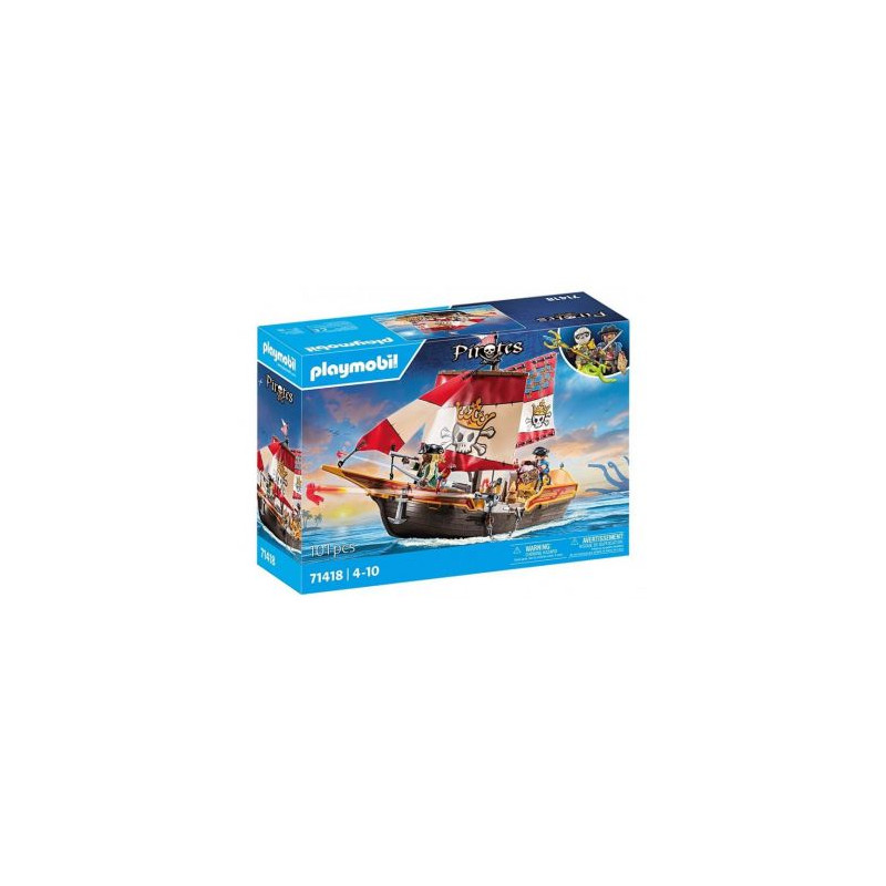 Piracka przygoda wzywa! Ze zwinnego, pływającego statku, należącego do królowej piratów, możliwe jest atakowanie wrogich okrętów lub odpieranie niebezpieczeństw pirackiego świata. Dzięki obracającym się i wychylnym armatom napastnicy szybko się poddają. Teraz nic nie stoi na przeszkodzie w poszukiwaniu ukrytych, pirackich skarbów. Podnieś żagle i wypłyń w rejs z królową piratów i jej załogą! niezwykłe pirackie przygody czekają na wszystkich fanów piratów na statku pirackim PLAYMOBIL. Szczegółowo zaprojektowany zestaw zawiera statek piracki z ruchomymi żaglami, obracające się armaty, dwie figurki PLAYMOBIL, papugę, a także kotwicę i wiele innych elementów oraz akcesoriów. Statek unosi się na wodzie i można go uzupełnić o silnik podwodny (7350 - sprzedawany oddzielnie). Zaciski na stopy na pokładzie statku zapewniają stabilność figurkom. Dzięki pomysłowym figurkom, szczegółowemu wyposażeniu i wspaniałym funkcjom, zestawy do zabawy z serii Pirates PLAYMOBIL oferują wiele godzin zabawy dla dzieci w wieku od 4 lat.