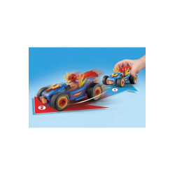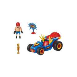 Szybki zestaw do zabawy PLAYMOBIL Funstars Racing: Wrestler z figurką PLAYMOBIL, gokartem i mnóstwem szalonych akcesoriów. Na miejsca, gotowi... Wrestler bez wahania startuje swoim gokartem z silnikiem typu pull-back. Podczas wyścigu jego znakiem rozpoznawczym są błyskawice, trzepocząca peleryna, ogień z rury wydechowej - z łatwością wyprzedza przeciwników. Szybkie wyścigi, jazda wokół przeszkód lub szalone akrobacje - PLAYMOBIL Funstars są gotowe do startu! Ten szalony samochód PLAYMOBIL zachwyci wszystkich fanów wrestlingu. Nowa, dynamiczna karoseria może być wyposażona w różne akcesoria. Pojazd z miejscem na figurkę PLAYMOBIL. Praktyczny silnik typu pull-back gwarantuje szybką zabawę. Idealne na prezent lub niespodziankę dla dzieci lubiących samochody w wieku od 4 lat.