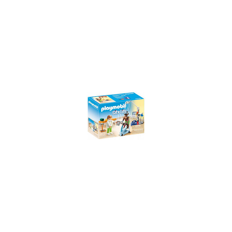 Fizjoterapeuta używa EKG do pomiaru wydajności pacjenta na rowerze stacjonarnym. Pacjent jest również ważony i musi wykonywać wszelkiego rodzaju ćwiczenia.Zabawa z playmobil rozwija kreatywność i wyobraźnię dziecka.