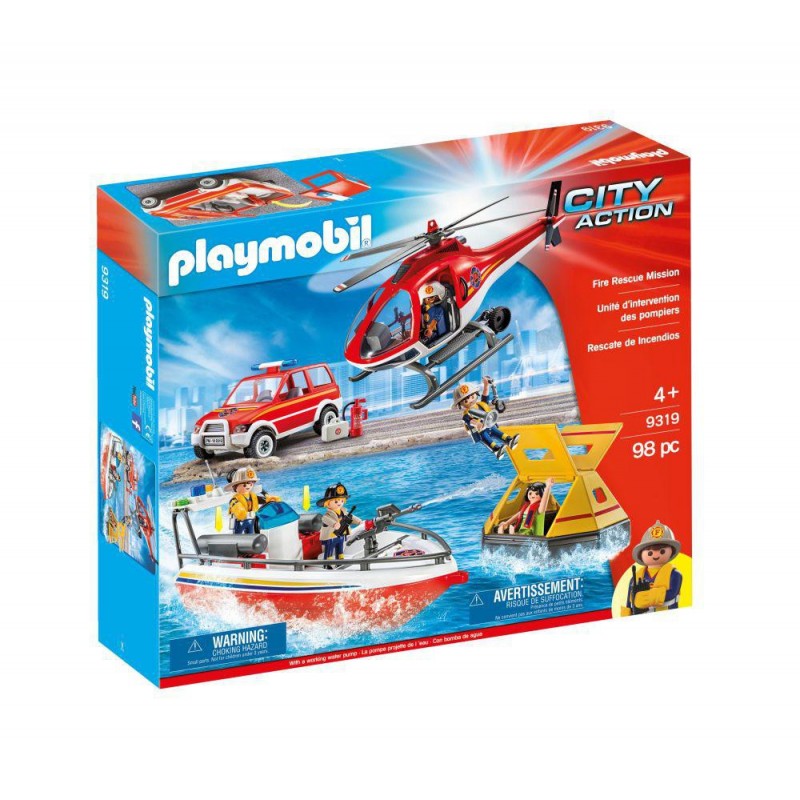 Playmobil Straż Pożarna. Zestaw zawiera 98 elementów. 4 figurki strażaków, łódź ratunkowa, samochód ratunkowy, helikopter oraz akcesoria tematyczne. Daj się ponieść zabawie w strażaków. Ruszaj na ratunek !