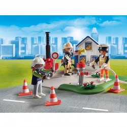 - akcesoria: 1 dom, 1 hydrant, 1 pompa wodna, 1 strzykawka z wodą, 1 wąż strażacki, 3 stożki, 1 walizka lekarska, 1 krótkofalówka, 1 sygnalizator policyjny, 2 kaski, 1 czapka policyjna