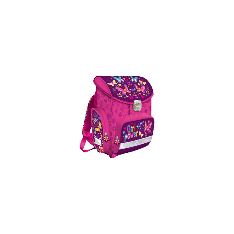 Tornister Flowers firmy Bambino. Trzykomorowy plecak wykonany z nieprzemakalnych materiałów. Wyposażony został w usztywniane dno i profilowane i usztywniane plecy, wzmacniane szelki z regulacją długości oraz elementy odblaskowe. Posiada 3 kieszenie zapinane na suwak oraz dwie kieszenie boczne. Do suwaka przyczepione zostały przywieszki. Plecak licencjonowany. Wymiary 36 x 27 x 14 cm