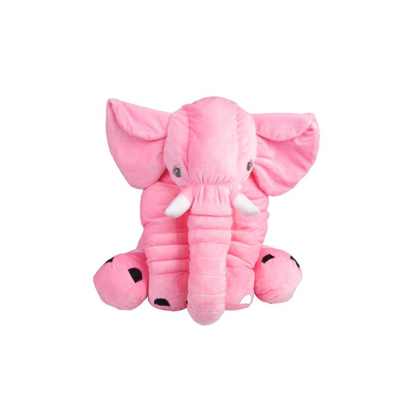 Śliczna maskotka w kształcie słonia w kolorze różowym, posiada wyszywane oczy, białe kły i długą trąbę, wygodną w chwytaniu. Ten sporych rozmiarów słoń może służyć jako przytulanka i poduszka. Wykonany z bezpiecznego, miękkiego, przyjemnego w dotyku materiału (welur).