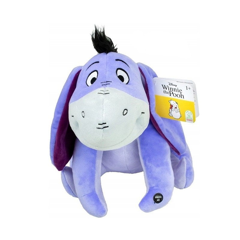 Urocza maskotka o wysokości 30 cm, wykonana z miękkiego, puszystego futerka. Ma duże, podobne do uszu klapnięcia na bokach głowy, które sprawiają, że wygląda niezwykle słodko i przyjaźnie. Kiedy naciskasz na jedną z łap Kłapouchego, wydaje on miły dźwięk, przypominający odgłos z bajki.
