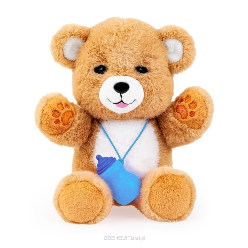 Śliczny, misiu zwierzaczek posiada mięciutkie futerko, a w swym wnętrzu kryje szereg niespodzianek! Pogłaszcz go po główce lub brzuszku i nakarm dołączoną do zestawu buteleczką, a z radością odwdzięczy się misiowymi odgłosami, zamykając przy tym i otwierając oczka. Zwierzak posiada dwie aktywne łapki. Naciśnięcie pierwszej uruchamia funkcję nagrywania i odtwarzania nagranego dźwięku, a naciśnięcie drugiej uruchamia urocze melodie.