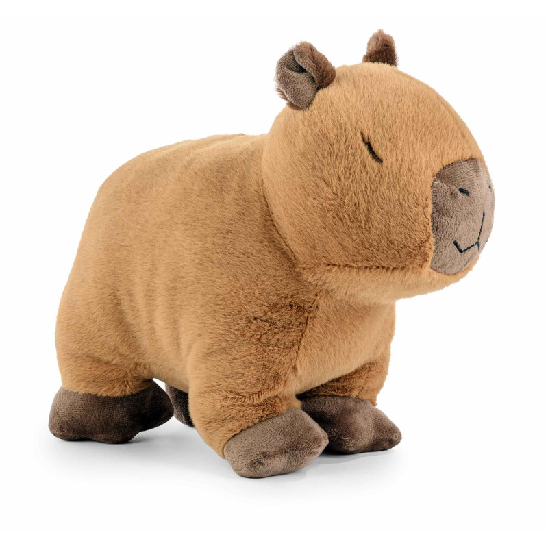 Maskotka wykonana z mięciutkiego, wysokogatunkowego pluszu, zabawka przyjemna w dotyku. Kapibara ma mięciutkie łapki w ciemniejszym odcieniu brązu, które dodają jej jeszcze więcej uroku. Dzięki swojej formie, maskotka świetnie sprawdzi się zarówno jako przytulanka do zasypiania i zabawy.