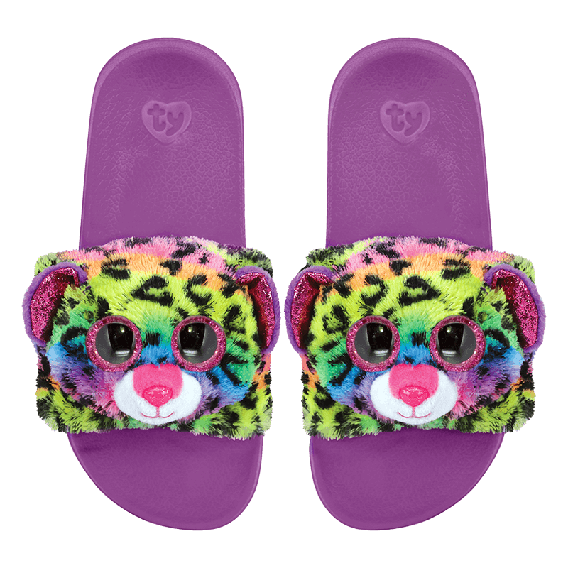 Kapcie lampart Dotty rozmiar L firmy TY.Kapcie, w których zakocha się każda dziewczynka. Podeszwa wykonana jest z gumy kauczukowej, a pasek i głowa zwierzątka z mięciutkiego pluszu. Idealny pomysł na prezent.