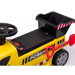 Pojazd posiada w tylnej części obrotową wywrotkę, w której transportuje się sypkie materiały lub tworzy beton— gruz, piach, żwir w realistycznym odpowiedniku. Łopata przymocowana z boku pojazdu będzie służyć prostym pracom. Od dziś maluch będzie mógł jeździć na swoją budowę i tworzyć własne konstrukcje. Utrzymana w żółtej kolorystyce wywrotka doskonale pokazuje, jakim typem pojazdu jest.