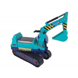 Koparka posiada ruchome ramię z wielką łyżką, bez problemu przetransportuje sypkie materiały jak gruz, piach, żwir z miejsca na miejsce lub stworzy beton. Ramię koparki można łatwo wypiąć, jeżeli jest niepotrzebne. Mały budowniczy będzie cieszył się z jazdy i zabawy. Pojazd oklejony jest efektownymi naklejkami imitującymi prawdziwe pojazdy tego typu. W zestawie znajduje się rewelacyjny żółty kask, dzięki któremu każde dziecko poczuje się jak prawdziwy pracownik budowy.