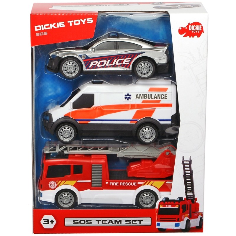 Zestaw 3 pojazdów ratunkowych SOS od Dickie Toys: wóz strażacki, radiowóz policyjny i ambulans z lekkością wprowadzają maluchy krok po kroku w tematy zasad ruchu drogowego i służb, które jadą na ratunek innym!