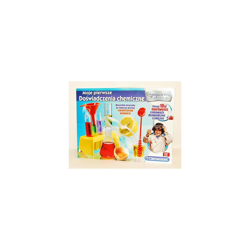 Moje pierwsze doświadczenia chemiczne firmy Clementoni. Laboratorium naukowe, które dzięki bogatemu wyposażeniu pozwoli na przeprowadzenie ponad 200 doświadczeń chemicznych. Liczne przyrządy są bezpieczne i proste w obsłudze. Dołączone do instrukcji ilustracje pokażą jak użyć substancje stosowane w życiu codziennym.