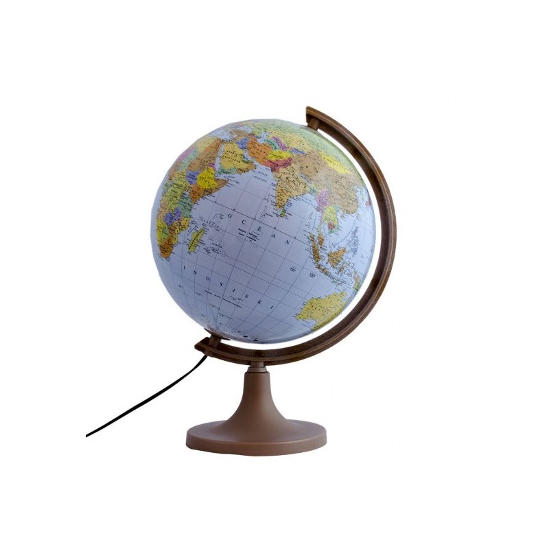 Globus z mapa polityczną Świata, natomiast po podświetleniu widać mapę fizyczną. Dzięki czemu w jednym globusie mamy dwie mapy. Świetnie nadaje się do przyswajania geograficznego położenia nie tylko państw, ale także gór, nizin, oceanów, mórz.