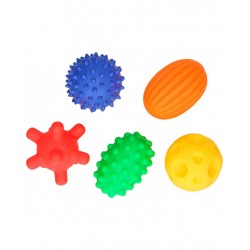 Wyraziste kolory i urozmaicona faktura to elementy cechujące Sensorky. Piłki sensoryczne zostały zaprojektowane tak, by pobudzać receptory czuciowe dziecka. Poniżej 3 miesiąca życia maluszek adoptując się do życia poza brzuchem matki napina mięśnie, które można rozluźnić wykonując delikatny masaż piłeczką, poprzez prowadzenie jej po plecach i nóżkach dziecka lub po całym ciele. Rozluźnione dziecko odczuwa większy komfort co przyspiesza zasypianie. Podając dziecku piłeczkę bezpośrednio do rączek, rozwijasz jego mięśnie dłoni. Taka forma zabawy uczy panowania nad palcami. Aby wspomóc ten proces zaleca się delikatny masaż opuszków palców za pomocą piłeczki. Dodatkowo łapanie, turlanie, podrzucanie piłeczki doskonali u dziecka zręczność i koordynację pomiędzy świadomym chwytaniem, a widzeniem. Piłeczki sensoryczne idealnie nadają się również do zabawy w trakcie kąpieli. Kąpiel kojarzona jest wówczas z czymś przyjemnym. Jednocześnie to doskonała okazja do zabawy stymulującej integrację sensoryczną u dziecka. Dodatkowo zagłębienia i wypustki są ciekawym elementem dla dziecka w okresie poznawania świata.