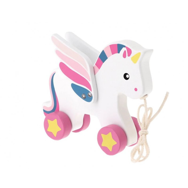 Rainbow Unicorn to uroczy drewniany jednorożec na kołkach ze sznurkiem do ciągnięcia. Jednorożec pochodzi z bajki Babies And The Bear, co sprawia, że zabawka ta jest szczególnie atrakcyjna dla małych fanów tej produkcji.