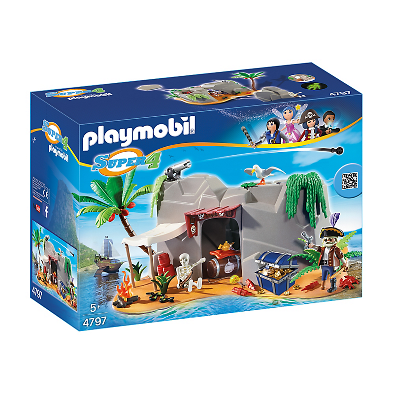 PLAYMOBIL to synonim kreatywnej zabawy - wcielania się w rolę; to jakość i bezpieczeństwo na najwyższym poziomie. Klocki te niezmiennie zalicza się do ulubionych zabawek dzieci. Zaufanie rodziców do marki bazuje także na wiedzy o wysokiej jakości produktu "Made in Europa". Poszczególne elementy zestawów Playmobil można łączyć z innymi, tworząc nowe i niepowtarzalne historie. PLAYMOBIL Super 4 Piracka jaskinia. Wiek 4+