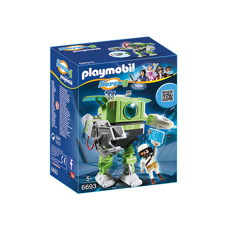PLAYMOBIL to synonim kreatywnej zabawy - wcielania się w rolę; to jakość i bezpieczeństwo na najwyższym poziomie. Klocki te niezmiennie zalicza się do ulubionych zabawek dzieci. Zaufanie rodziców do marki bazuje także na wiedzy o wysokiej jakości produktu "Made in Europa". Poszczególne elementy zestawów Playmobil można łączyć z innymi, tworząc nowe i niepowtarzalne historie. PLAYMOBIL Super 4 Robot Cleano. Wiek 5+