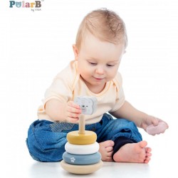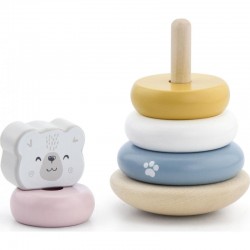 Piramidka Edukacyjna Miś - to klasyczna zabawka dla najmłodszych, która zapewni Twojemu dziecku radosną, ciekawą i kreatywną zabawę. Pastelowy zestaw posiada 6 sztuk krążków-klocków w różnych rozmiarach w tym jeden w kształcie główki Misia. W podstawie umieszczony jest bolec do nakładania elementów. Zabawka idealna dla maluszków rozpoczynających układanie wież z klocków. Piramidka wspomaga rozwój koordynacji ręka-oko, logicznego myślenia, dodatkowo wspomoże naukę rozpoznawania kolorów.