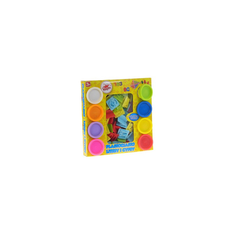 Plastociasto Litery i cyfry firmy Brimarex. Plastociasto to niezwykła masa plastyczna z której możesz wykonać przeróżne kształty. Stwórz własnego pomysłu figurki. Zestaw zawiera: 8 pojemników masy elementy do tworzenia literek i cyferek
