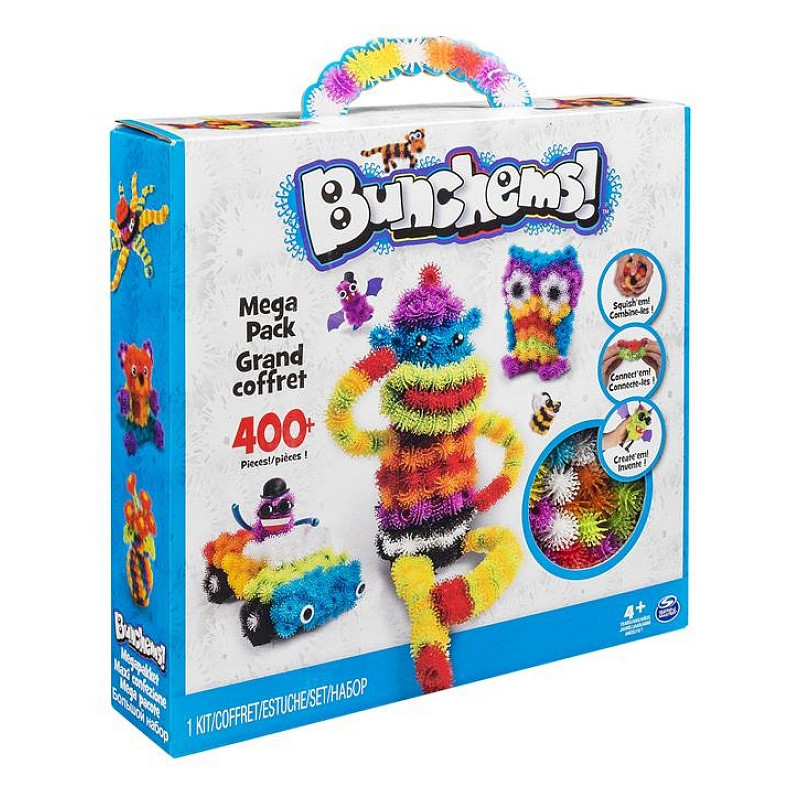 Bunchems kolorowe rzepy Mega zestaw firmy Spin. Bunchems to male kolorowe rzepy, które dzięki łączeniu i ściskaniu pozwolą Ci na stworzenie niezwykłych projektów 3D. Zestaw zawiera 370 kolorowych rzepów oraz 36 akcesoriów i instrukcję. Wiek 4+