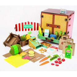 Kreatywny zestaw, który pozwala dzieciom pobudzić wyobraźnię i stworzyć ciekawy model tekturowego sklepiku. Każde dziecko lubi naśladować dorosłych. Ten zestaw pozwoli dzieciom nauczyć się nazw produktów spożywczych. Pobawić się w role. Wykona owoce i warzywa z tkaniny lub papieru na potrzeby zabawy.