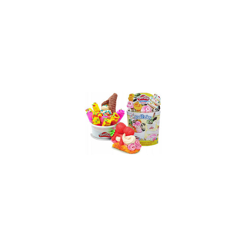 Play-Doh - Ciastolina Lody w waflach E8055. Lody Play-Doh Rollzies to sensacja wyobraźni! Ciastolina Play-Doh Color Burst i gofrownica sprowadzają najnowszą zabawę tworzenia lodów w waflach! Rozwałkuj ciastolinę Color Burst żeby stworzyć piękne, wymyślne, zawijane lody. Użyj gofrownicy do stworzenia tradycyjnych kolorowych wafelków w kształcie tacos, misek i nie tylko! Zagarnij lody do naczynia, ozdób przeróżnymi dodatkami, które stworzysz dzięki foremkom na gofrownicy, a na koniec wyciśnij bitą śmietanę!