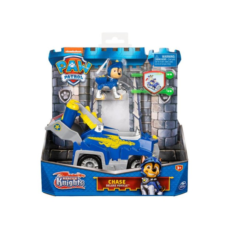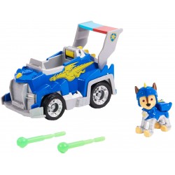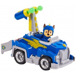 Radiowóz Chase'a z prawdziwymi wyrzutniami i figurką pieska od firmy SPIN MASTER. W opakowaniu znajdziemy policyjny pojazd z grafiką smoka, w którym możemy umieścić miniaturkę bohatera Psiego Patrolu. Miniaturka dobrze odwzorowuje prawdziwa postać. Samochód posiada ruchome elementy (koła, spojler, wyrzutnie). Wystarczy, że naciśniemy na spojler, a wyrzutnie ustawią się w odpowiedniej pozycji. Możemy wystrzelić z nich prawdziwe naboje, które zostały dołączone do zestawu. Wymiary opakowania: 24x10x23cm