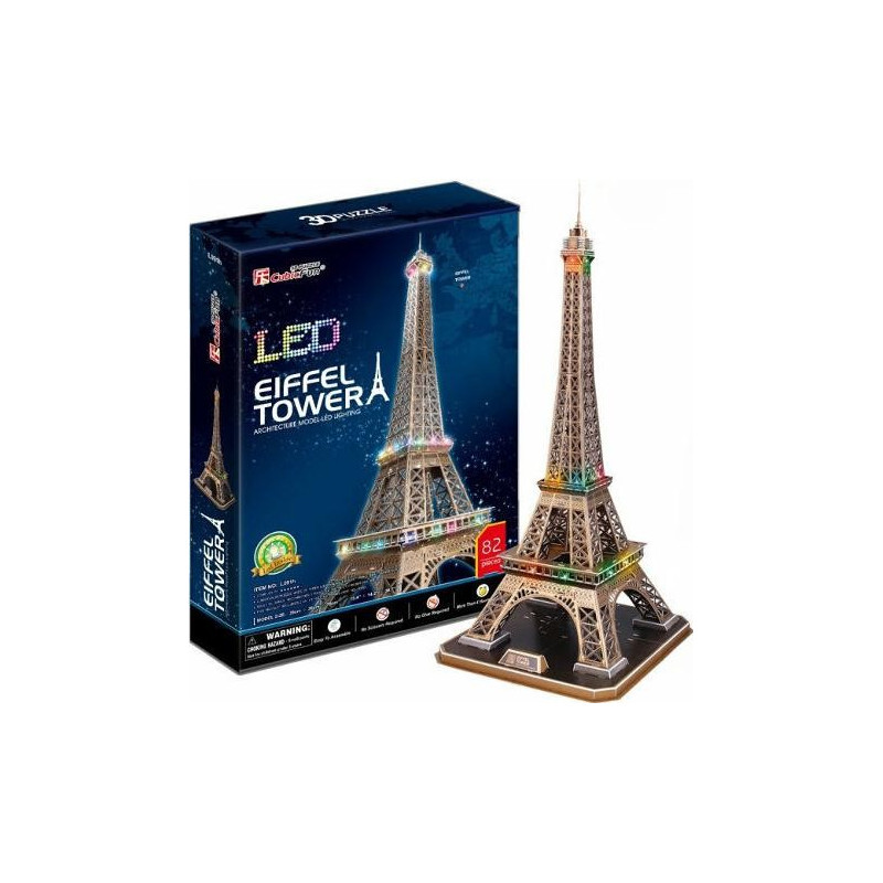 Puzzle 3D Wieża Eiffela to pasjonująca zabawa dla dzieci oraz kolekcjonerów architektury z różnych stron świata. W opakowaniu znajduje się 82 EL. puzzli, wykonanych ze specjalnego materiału przypominającego piankę. Puzzle są ponumerowane, ponacinane i umieszczone na arkuszach. Wystarczy bez użycia siły wycisnąć element z arkusza i zmontować go zgodnie z dołączoną instrukcją, bez użycia kleju ani specjalnych narzędzi. Gotową budowlę stawia się na podstawce, w której znajdują się diody LED. Tak podświetlona budowla z puzzli 3D, przy zgaszonym świetle prezentuje się fenomenalnie.