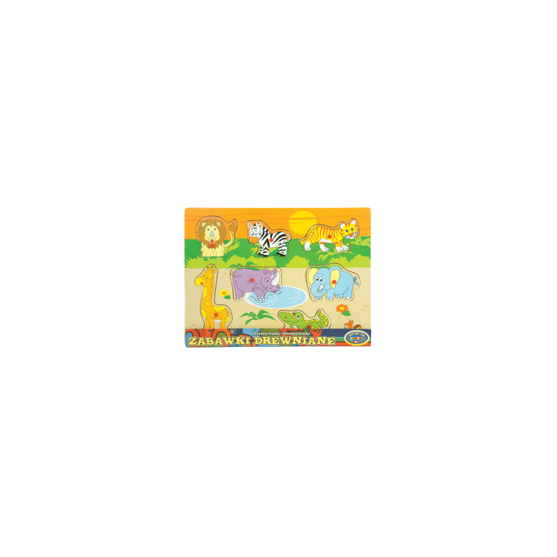 Układanka drewniana firmy Dromader. Układanka drewniana uczy, bawi i rozwija. Wspomaga rozwój wyobraźni i umiejętność kojarzenia, zdolności manualne, pamięć wzrokową, naukę zachowań społecznych poprzez wspólną zabawę. Zestaw zawiera tablicę i 8 puzzli z pinezkami do dopasowania. Wiek 12 miesięcy+