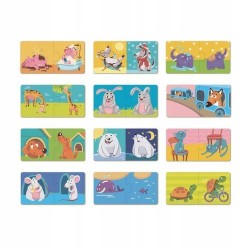 Puzzle powstały specjalnie z myślą o najmłodszych. Proste puzzle do nauki dopasowywania,12 obrazków przeciwieństwa 2 elementowych. Trzeba dopasować obrazek np. brudnej świnki do czystej Przez układanie puzzli dzieci rozwijają małą motorykę oraz poprawiają koncentrację i spostrzegawczość. Puzzle z tej serii cechuje sympatyczna i przyjemna stylistyka, która zachęca dziecko do ich złożenia. Wiek 18m+.