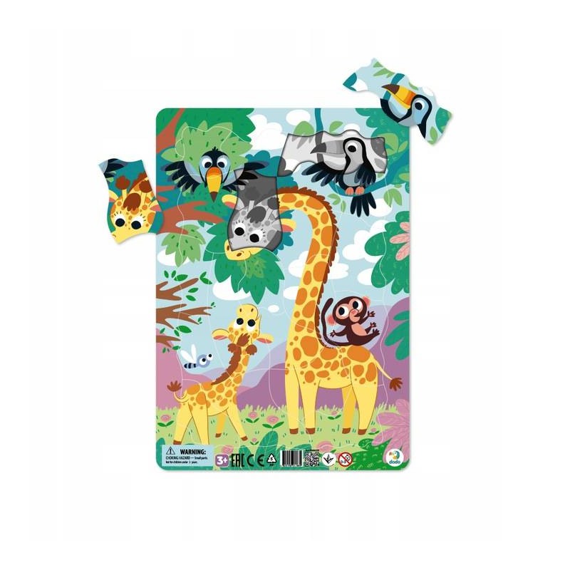 Puzzle ramka żyrafy 21 elementów powstały z myślą o najmłodszych. Ramka obrazka ułatwia układanie. Są proste, kolorowe, zachęcają do zabawy. Przez układanie puzzli dzieci rozwijają małą motorykę oraz koncentrację. Wiek 3+.