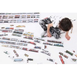 Jeśli Twój maluch lubi pociągi ta zabawka jest dla niego idealna. Pozwoli poznać historię tych wspaniałych maszyn, transportu oraz mechaniki. Nieskończona ilość możliwości ułożenia aż 104 elementów, na których znajdują się różnorodne pociągi. Puzzle, które pozytywnie wpłyną na koncentrację, rozwój wyobraźni, umiejętności manualnych oraz małej motoryki.