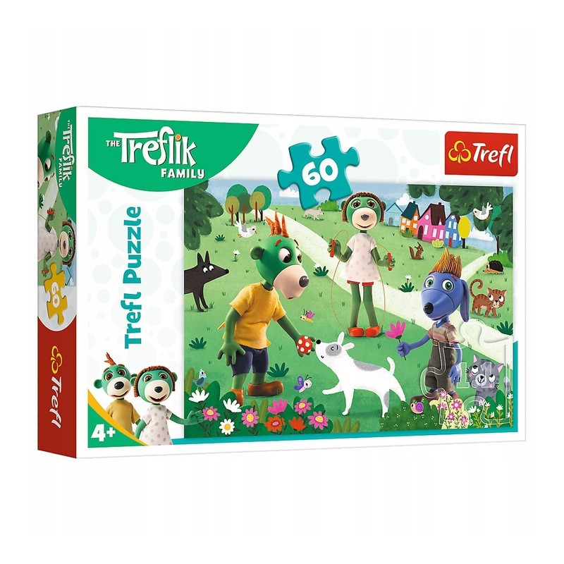 Puzzle Trefl 60 elementów radosny dzień Treflików. Po ułożeniu powstanie obrazek o wymiarach 22x33 cm. Układanie puzzli to :
