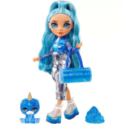 Rainbow High w ekscytujący i magiczny sposób dekorując elementy stylizacji i zwierzątka tęczowym, lśniącym slime. Zestaw zawiera wszystko, czego potrzebujesz do zrobienia błyszczącej masy. Wystarczy wymieszać żelowy proszek z brokatem, dodać wody i gotowe! Teraz możesz włożyć slime do torebki lub butów lalki, by zmieniły wygląd! Stylizacja lalki Skyler Bradshaw jest pełna wspaniałych detali. Lalka jest ubrana w asymetryczną, szałową spódniczkę, top oraz transparentną, niebieską kurteczkę, a jej twarz mieni się magicznymi iskierkami. Skyler ma piękne niebieskie włosy, długie rzęsy i szklane oczy. W zestawie z lalką znajduje się jej uroczy zwierzak - yeti o imieniu Bluebell, który ma magiczny róg.