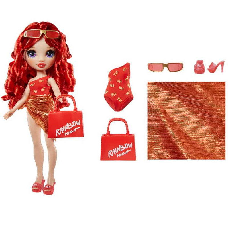 Wejdź do kolorowego świata Rainbow High i poznaj lalkę Swim and Style Ruby Red! Ta urocza lalka o intensywnie czerwonych włosach to prawdziwa ikona mody, gotowa na letnie przygody. Ruby Red z pewnością zachwyci każdą młodą stylistkę swoją elegancją i stylowym wyglądem, idealnym na plażę, basen czy sesje zdjęciowe.