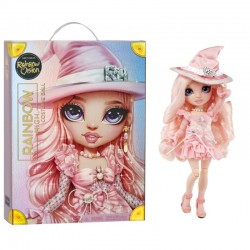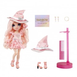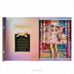Bella Parker zawsze ma najbardziej czarowny look. Na bal przebierańców Rainbow Vision przygotowała olśniewający kostium czarownicy. Zrobi wszystko, by jej szkoła wyróżniała się na tej imprezie! Uwielbia fotografię i ma świetny gust. Modna lalka Bella ma na sobie krótką różową sukienkę z falbankami i błyszczącymi cekinami. Jasnoróżowe włosy zakręciła w stylowe loki, a na głowę nałożyła kapelusz wiedźmy z dużą srebrną sprzączką i opalizującym rantem. Różowe szpilki sparowała z koronkowymi skarpetkami.