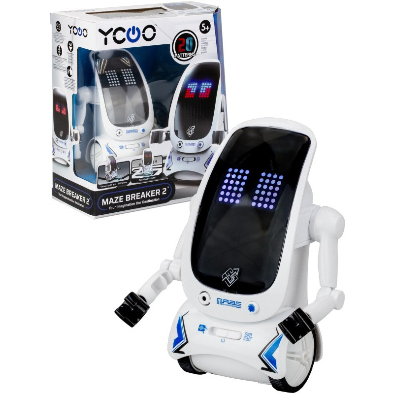Nowoczesny robot Maze Breaker 2 nagrywa głos i odtwarza efekty dźwiękowe, a zamiast twarzy posiada ekran LED, na którym może wyświetlać aż 20 różnych wzorów. Ten sprytny robocik wyposażony jest w funkcję podążania po ścieżce. W zestawie, poza robotem, znajduje się także kartka z labiryntem, który Maze Breaker 2 potrafi przejść. Zabawka zasilana jest bateriami AAA (niezawarte w zestawie).